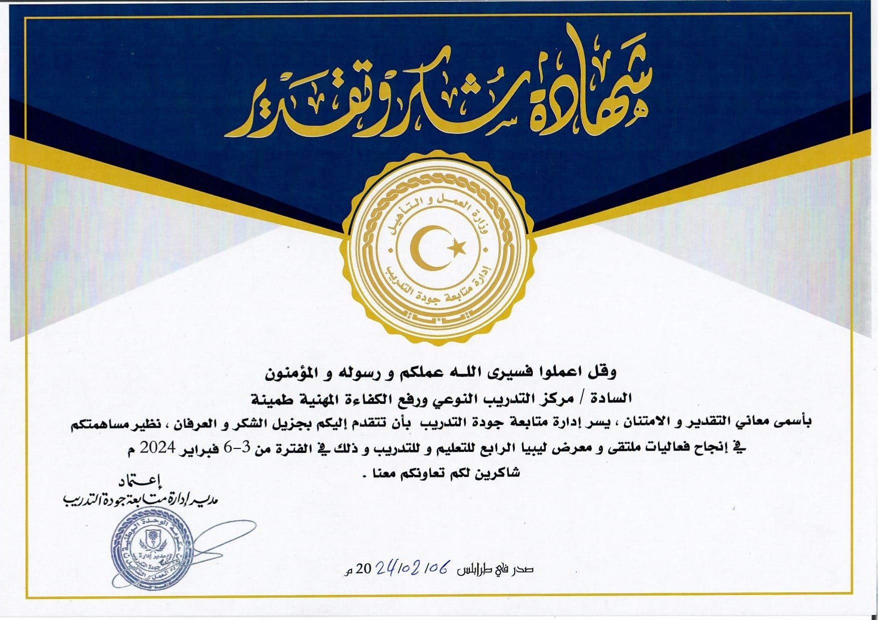 مركز التدريب ورفع الكفاءة المهنية طمينة بالتنسيق مع مركز أعمال مصراتة للمشروعات الصغرى والمتوسطة. أُقيمت دورة ريادة الأعمال للباحثين عن…